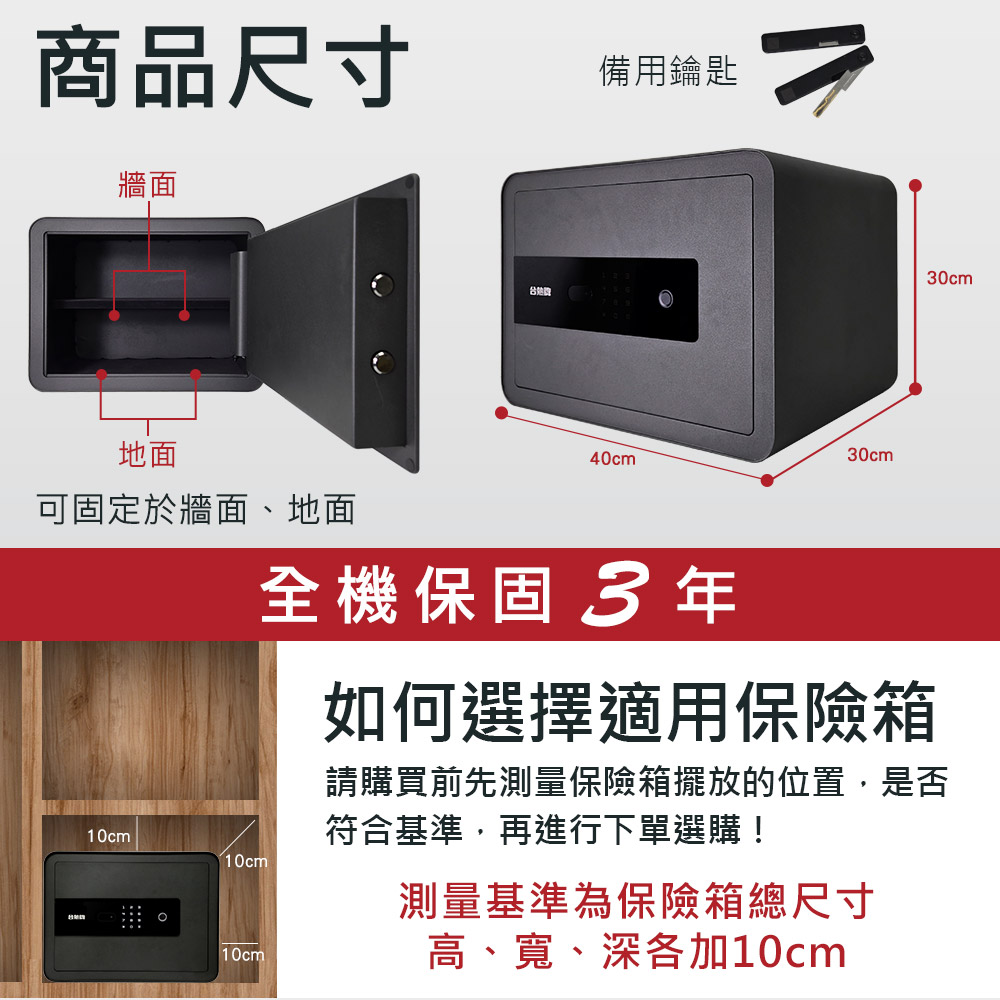 台熱牌電子保險箱/櫃TES-30B(指紋、密碼、鑰匙)